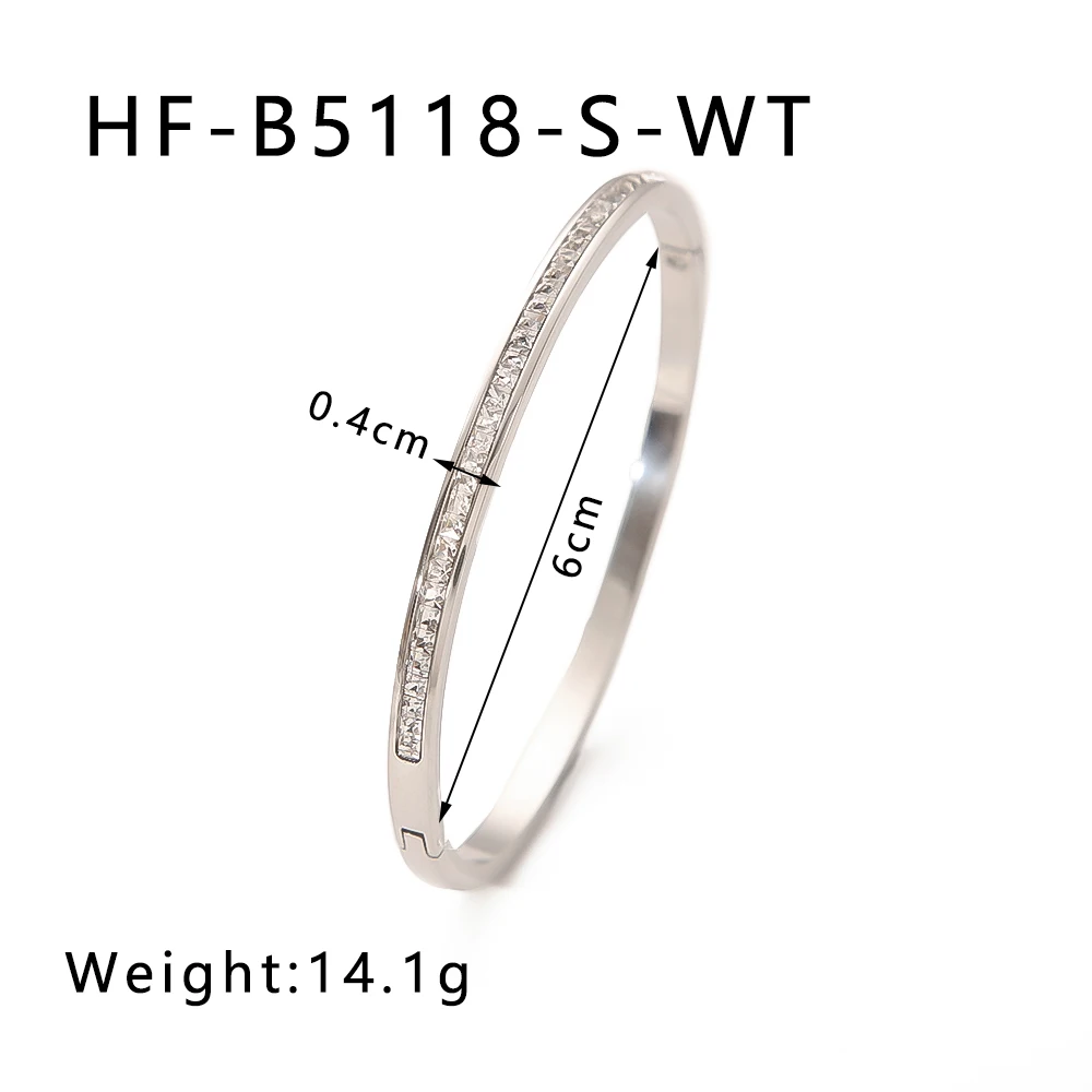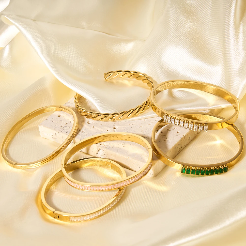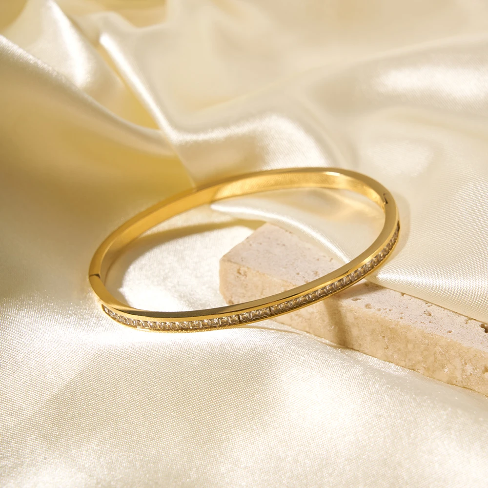Hot Selling Gold Plated Steel Metal 18K Bracelet Bangle Zircon Inserting Narrow Band Cuff Bangle Tarnish Free